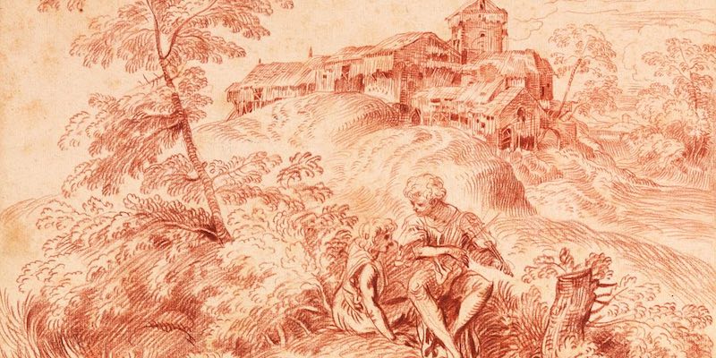 The exhibit opens with portraits by artists — Jacques Rigaud, Nicolas de Largilliere and Jean-Francois de Troy. Mythological and religious paintings follow with works by François Lemoyne and Charles de la Fosse. Then it's onto the lively fête galante with drawings by Jean-Antoine Watteau and Francois Boucher. The exhibition closes with neo-classicism by Jacques-Louis David, Jean-Charles Perrin and François-André Vincent.